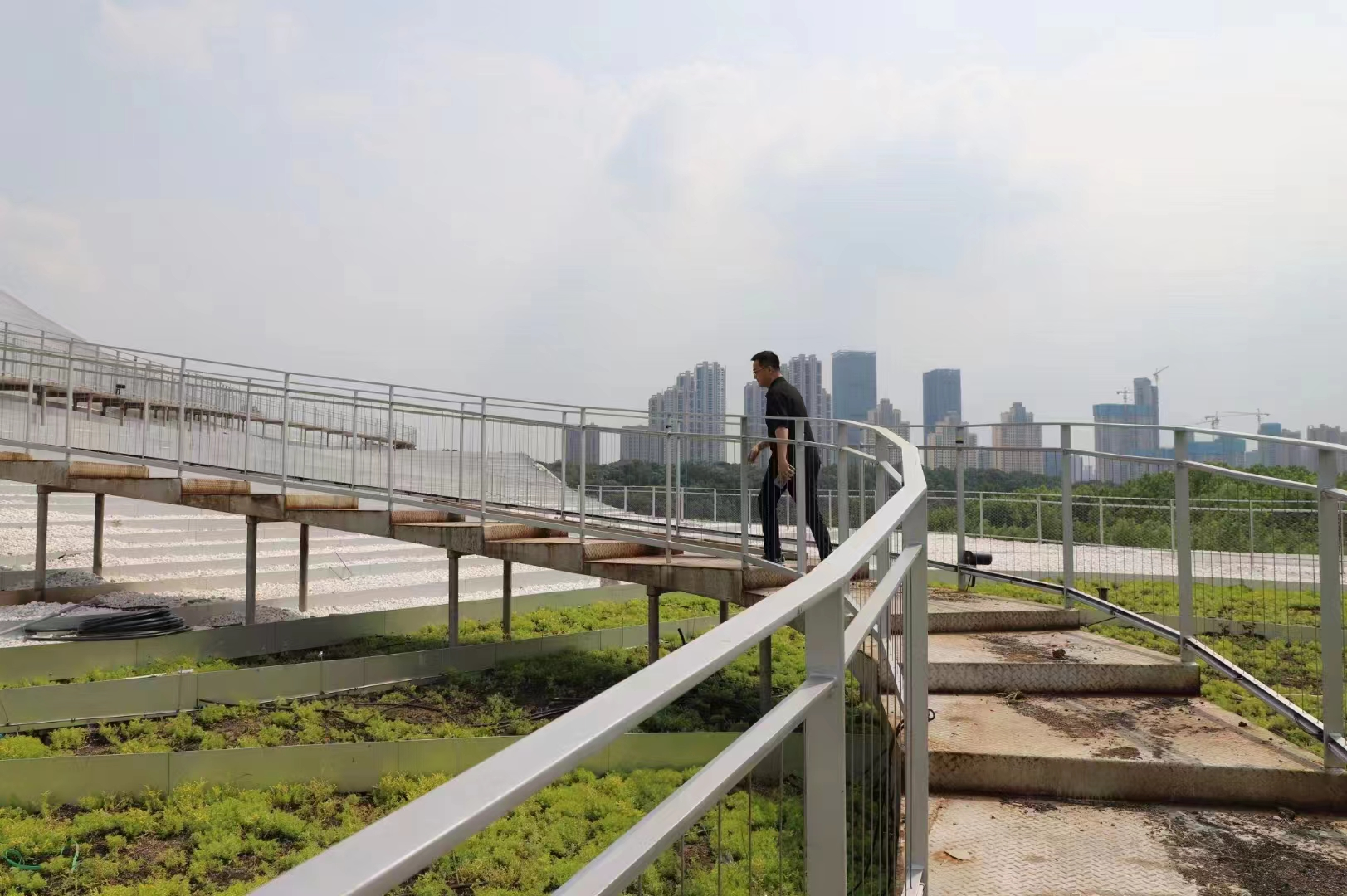 屋頂棧道是琴臺館獨特的存在,它構(gòu)成了獨立于美術(shù)館展覽空間之外的公共空間系統(tǒng),聯(lián)系了月湖公園,也串聯(lián)了展廳出口、公教空間、藝術(shù)品商店、咖啡廳等不同的公共空間。而這一棧道,正是頂尖國際當(dāng)代藝術(shù)家奧拉維爾·埃利亞松的作品。他為琴臺館的屋面棧道創(chuàng)作了燈光藝術(shù)裝置“8種顏色的路徑”,棧道的顏色將隨著人們經(jīng)過感應(yīng)而改變色彩。這種空間的公共性將使琴臺館建筑超越孤立的視覺形象,人們的活動也成為建筑表面的一部分。
