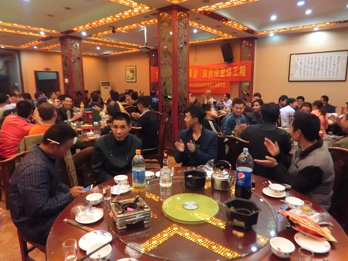 此次聚餐,拉近了項(xiàng)管們與工友們的關(guān)系,項(xiàng)管們感謝工友們的付出與配合,工友們感謝公司的關(guān)懷,大家同懷感謝之心,最后達(dá)成工作服務(wù)理念的高度統(tǒng)一。做好工程,做精品工程,緊抓指標(biāo),限時(shí)限人限任務(wù),保質(zhì)保量保工期。