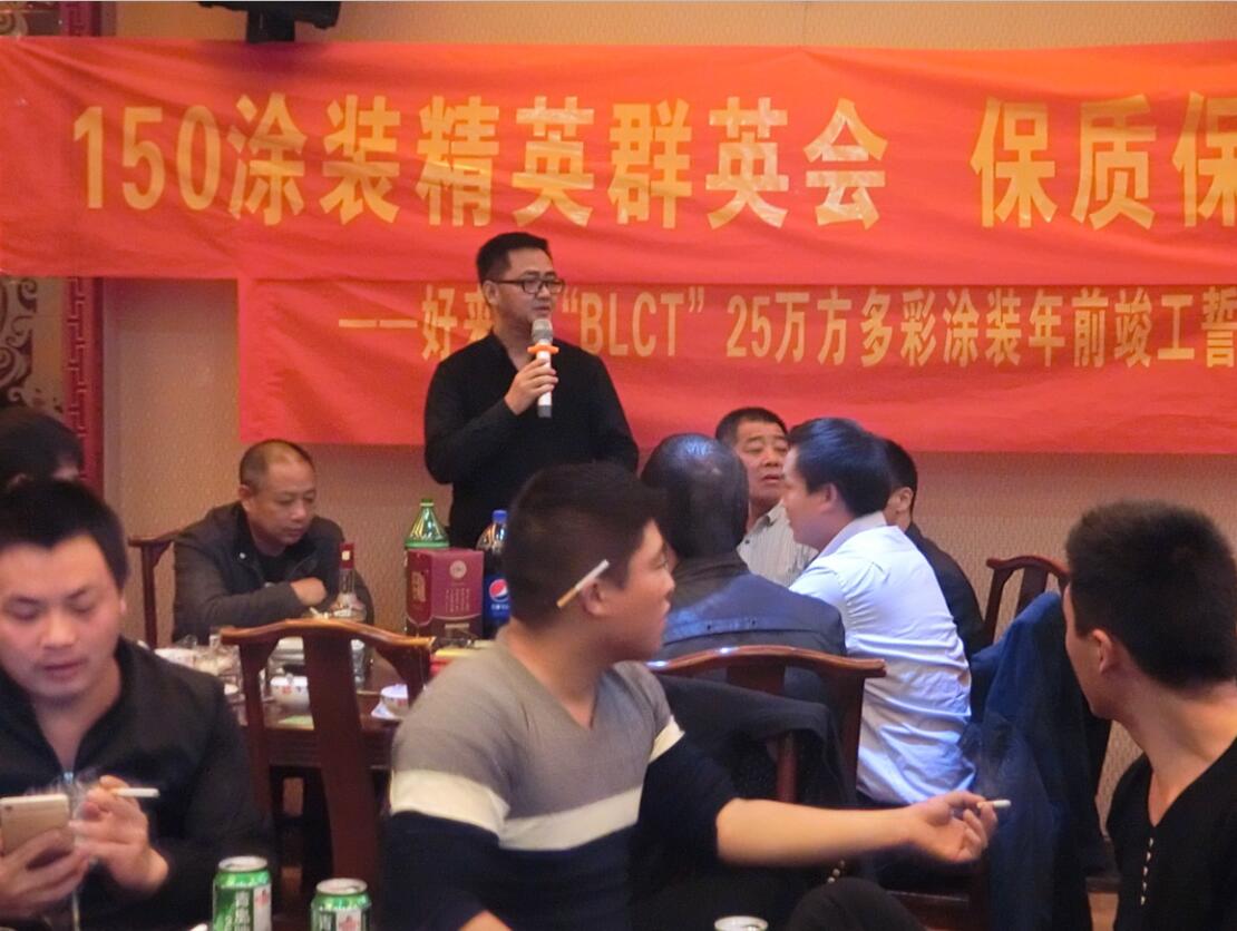 10月26日晚,公司150名涂裝精英們歡聚一堂,共聚晚餐,大家暢談工作,互相打氣,為2017年年前項(xiàng)目工作做重要?jiǎng)訂T和工作布置。聚餐中,公司項(xiàng)管人員一一發(fā)表講話,分別感謝各位工友們的工作配合和辛苦付出。施工班組劉班組代表工友們發(fā)言:“感謝公司提供如此好的工作平臺(tái),感謝好來屋廖總的信任,我們將緊隨公司,在公司項(xiàng)管人員的帶領(lǐng)下,全力工作,保質(zhì)保量如期完成工作任務(wù)”。